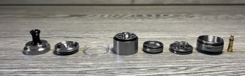 Что же, подведем финишную черту. По сути своей Алекс тут совместил идеи сразу от двух атомайзеров: Pioneer от BP Mods и Dvarw от KHW Mods. От первого взяли ограничитель камеры и способ установки жиклеров, а у второго позаимствовали систему укладки хлопка, подачу жидкости на него, принцип воздухазабора и обдува.