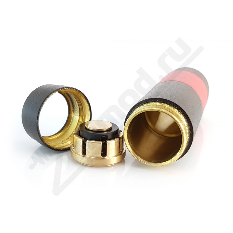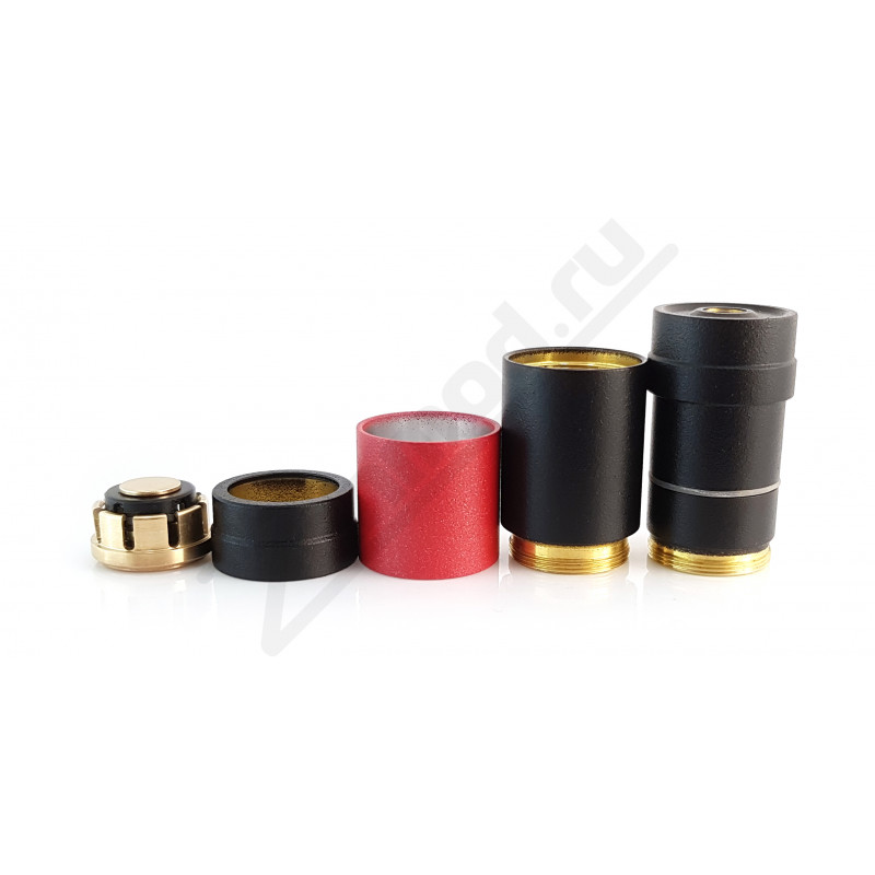 Контактная группа MTLite выполнена из латуни, а пружина, возвращающая кнопку в исходное положение, также отвечает и за подстройку под высоту аккума и длину пина. Сама пружина и крышка в токопередаче не участвуют, поэтому ток проходит только через две детали: цангу и центральный посеребренный контакт, который El Thunder советует зачищать раз в 2 недели.