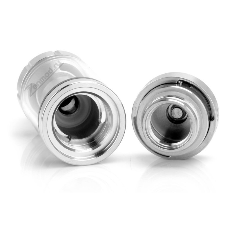 Бак MELO III от компании Eleaf. Сабомный испаритель от известного бренда с верхней заправкой и скрытым забором воздуха. Испарители со сменными головами уже почти не отстают от обслуживаемых баков. MELO III комплектуется двумя сменными головами с сопротивлением 0.3 Ом и 0.5 Ом, которые способны работать в диапазоне от 30 ватт до 80 ватт. Это действительно впечатляющие возможности. К достоинствам этого бака можно также отнести удобную верхнюю заправку до четырех миллилитров жидкости под верхней крышкой и регулируемый нижний обдув, который скрыт под регулировочным кольцом. Для защиты от перегрева, а это действительно возможно с такими мощными сменными головами, Eleaf предусмотрел дриптип с делриновым 510 коннектором. При желании вы сможете установить любой другой 510 дриптип. Стоит обратить внимание, что центральный контакт фиксированный и посеребренный. MELO III способен подарить приятные ощущения как начинающим, так и опытным вэйперам.